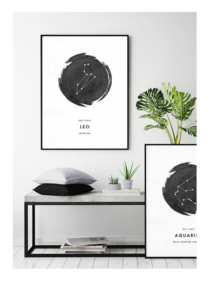 Personlig grafisk poster med stjärntecken. Vid beställning väljer du själv namn som ska anges på tavlan.